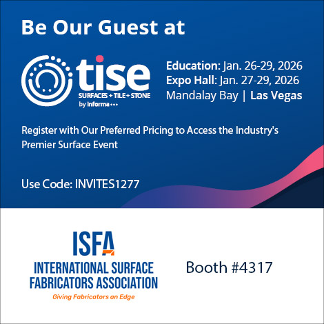 The International Surface Event (TISE) is one of the industry’s largest gatherings for surface materials, fabrication professionals, and suppliers. This year, ISFA is proud to participate by hosting the Learning Lab, a series of fast-paced, high-value education sessions designed specifically for fabricators. Through the ISFA Fabricator Exchange™, member experts will share practical insights on safety, legislation, pricing, leadership, and shop operations—bringing real-world knowledge directly to the show floor.