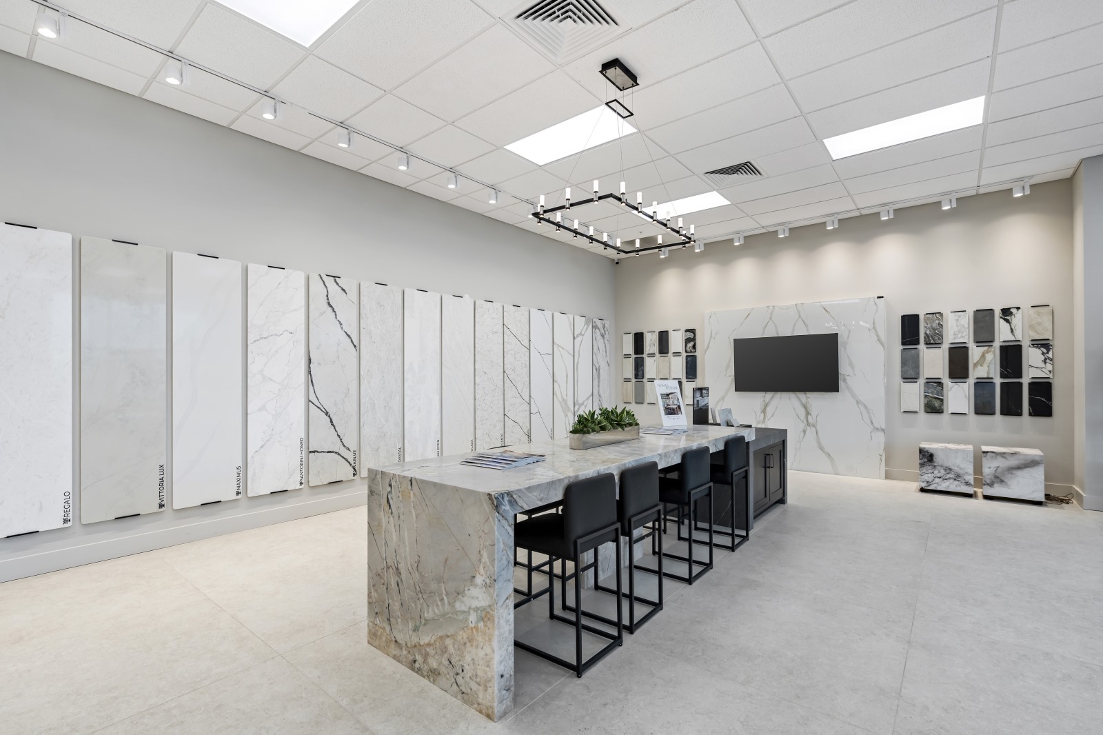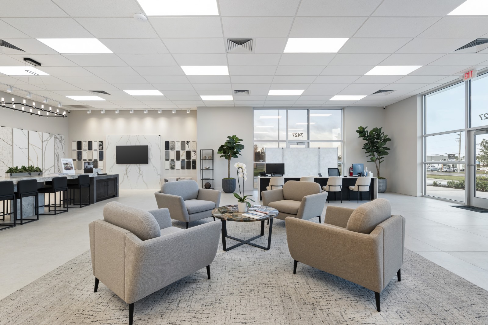Designed to inspire and support fabricators, designers, architects, builders, and homeowners, the Sarasota facility features a curated indoor slab gallery showcasing natural stone, Pompeii Quartz, Infinity porcelain slabs, and specialty surfacing materials. The modern showroom features large-format slab displays giving designers and homeowners a clear view of each material’s detail and movement.